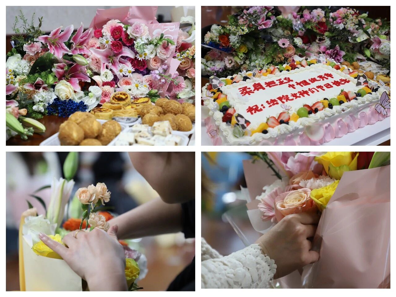 活动现场花香四溢、暖意融融。在花艺老师的专业指导下,大家认真学习花材辨识、色彩搭配、修剪造型等技巧。平日里伏案阅卷、敲响法槌、服务群众的巧手,此刻轻剪花枝、巧搭层次,将玫瑰、康乃馨等花材精心组合,把严谨细致的司法素养融入艺术创作。一剪一插间,疏密有致、高低错落的花艺作品次第呈现,或清新雅致、或热烈明媚,承载着对生活的热爱与对事业的热忱。大家交流心得、分享喜悦,现场欢声笑语不断,洋溢着轻松愉快的节日氛围。