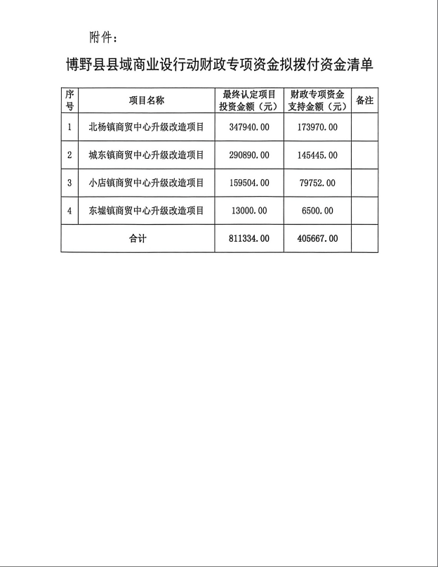 关于博野县县域商业建设行动项目拟拨付资金的公示