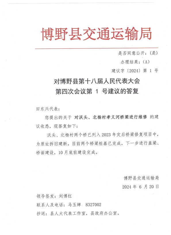 对博野县第十八届人民代表大会第四次会议第1号建议的答复